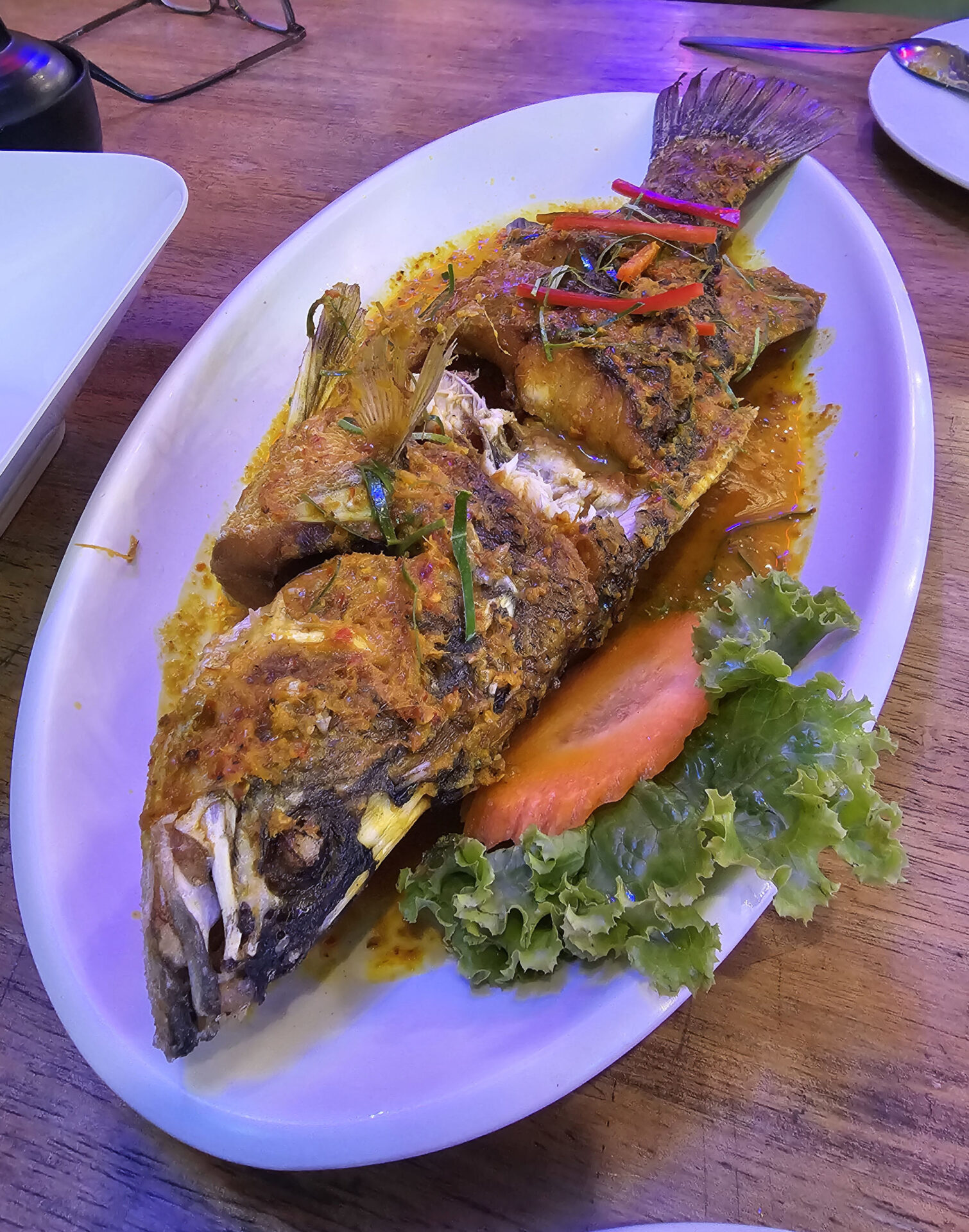 The owner previously worked in luxury hotel kitchens, so you can expect high quality. Conveniently, he speaks excellent English, so I simply asked him to recommend dishes instead of working my way through the menu. I had seafood fried rice and deep-fried seafood with garlic curry pepper. It was far too much for me on my own, so I left with the food for the next day as takeaway. Significantly more expensive than usual for local Thai restaurants, but also really good. If you're in the Phuket Town area, it's definitely worth a detour.